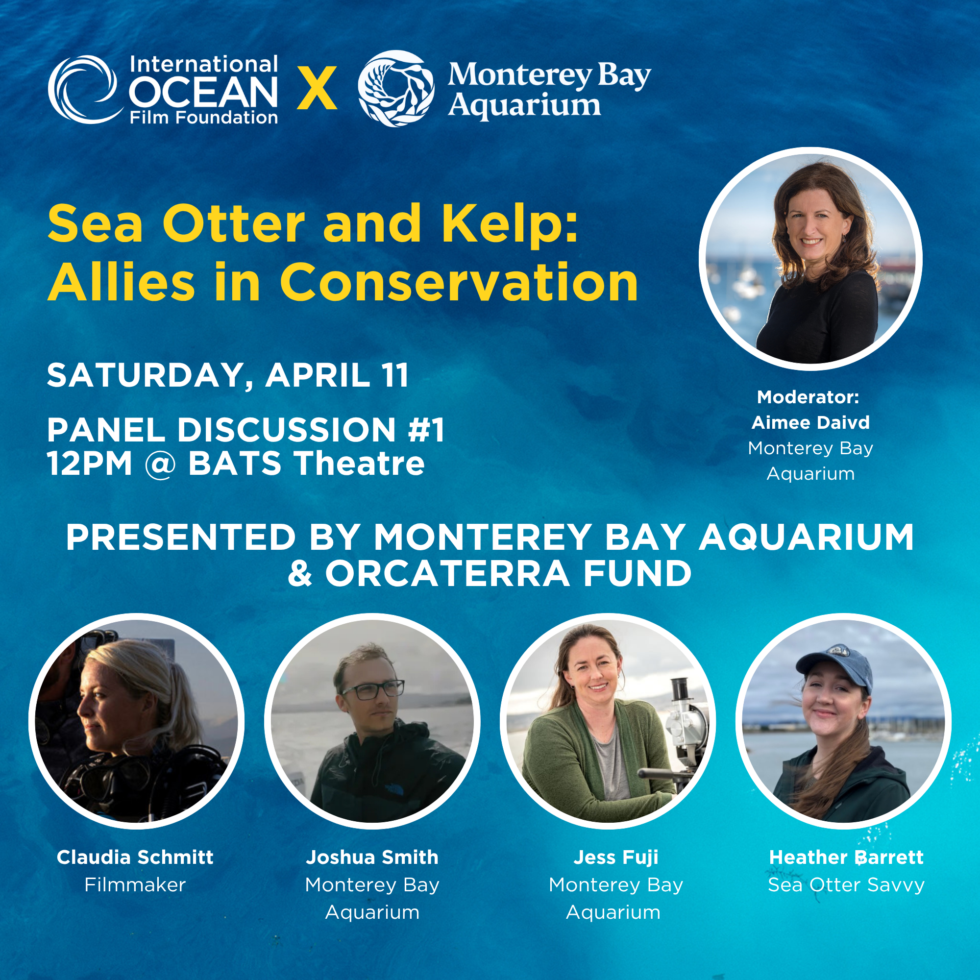 Panelists: Claudia Schmitt, Filmmaker | Joshua Smith, Monterey Bay Aquarium | Jess Fuji, Monterey Bay Aquarium | Heather Barrett, Sea Otter Savvy